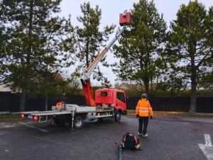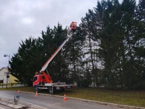 Cette semaine, les services techniques sont intervenus à l’aide d’une nacelle afin de retirer l’ensemble des nids de chenilles processionnaires situés en hauteur dans les arbres communaux.