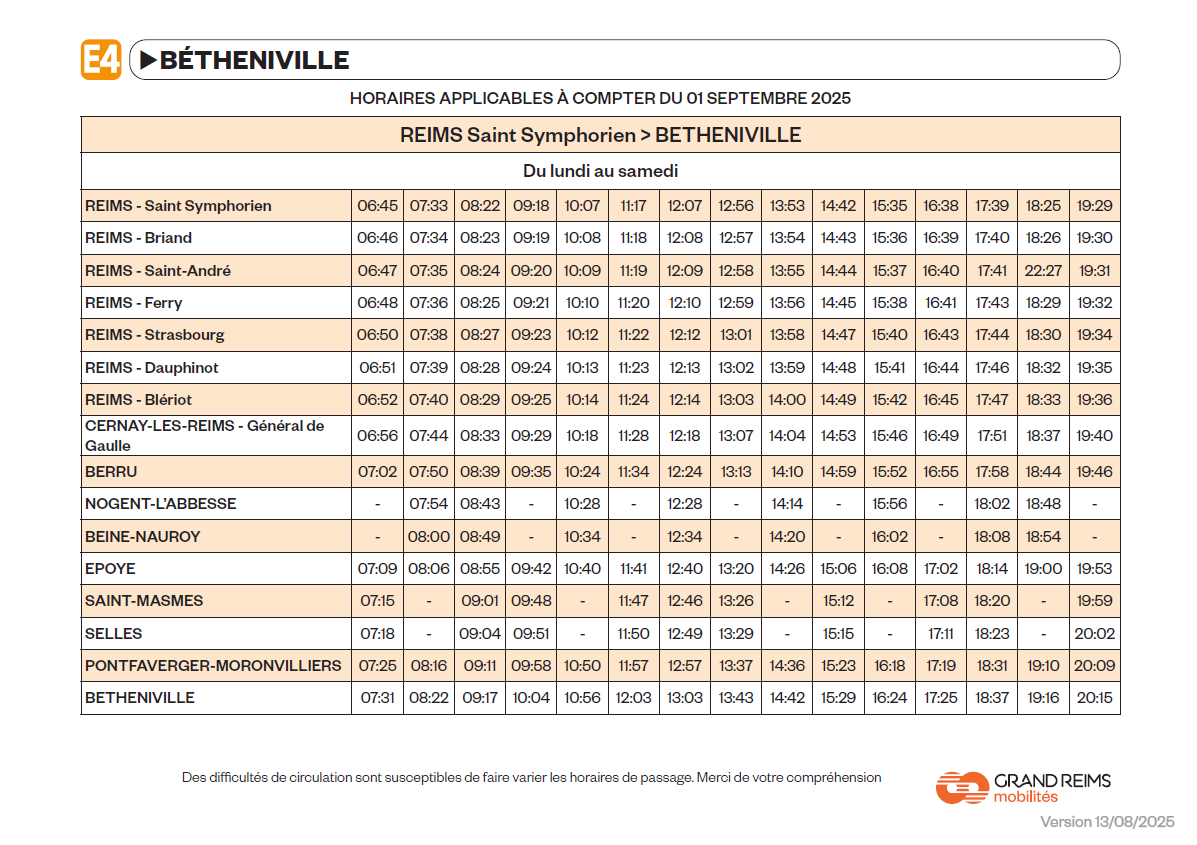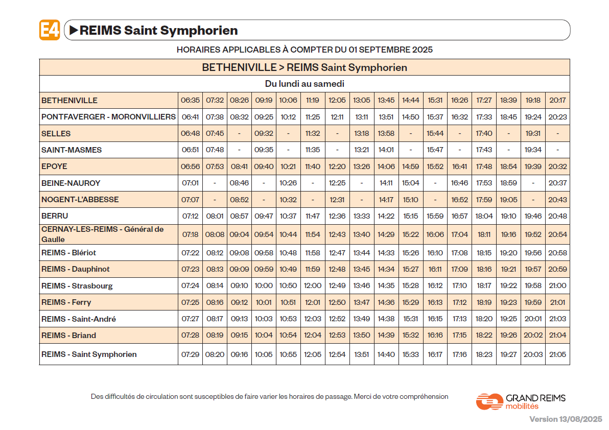 A partir du 1er septembre 2025, la ligne Express 4 repasse en horaire d’hiver. Voici les nouvelles grilles horaires :